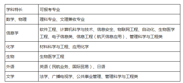 1、考生根據(jù)高考報(bào)名科類(或選考科目要求)以及自身學(xué)科特長(zhǎng)、創(chuàng)新潛質(zhì)、興趣愛好等情況綜合考慮,報(bào)考相對(duì)應(yīng)的學(xué)院專業(yè)(限報(bào)一個(gè))。有關(guān)支撐材料須與申請(qǐng)專業(yè)相關(guān)。各類學(xué)科特長(zhǎng)可報(bào)考專業(yè)如下:專業(yè)報(bào)考要求: