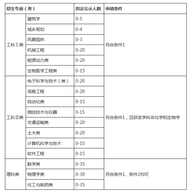 具備參加2017年全國普通高等學校統(tǒng)一招生考試資格的理科高中畢業(yè)生(浙江上海不分文理)。理想信念堅定,自覺踐行社會主義核心價值觀,思想品德優(yōu)良,遵紀守法,品行端正;有學科特長或創(chuàng)新潛質,且在高中階段符合下列條件之一均可報名(同等情況下,中西部地區(qū)、農(nóng)村地區(qū)考生優(yōu)先考慮):
