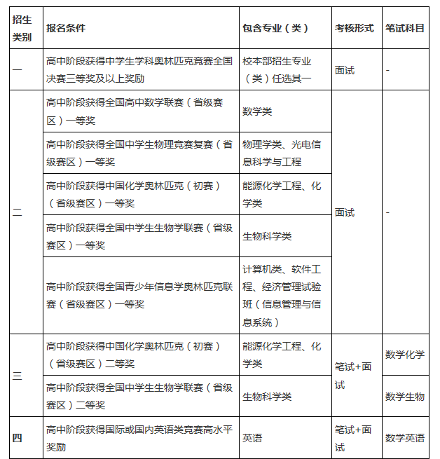 答:如考生在數(shù)學(xué)、物理、化學(xué)、生物學(xué)、信息學(xué)等學(xué)科成績特別突出并能提供相應(yīng)佐證材料可以申請報考我校自主招生類別六。