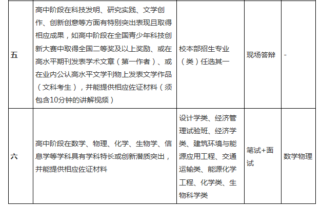 3、報考類別五的考生須提交10分鐘左右由學(xué)生本人對研究成果進(jìn)行講解的視頻,如研究成果為非學(xué)術(shù)文章類的,還須提交研究成果的詳細(xì)文字材料,F(xiàn)場答辯采用ppt講解形式,講解ppt及其他演示材料由考生自行準(zhǔn)備。類別五認(rèn)定人數(shù)不超過我校自主招生認(rèn)定總?cè)藬?shù)的10%,請慎重報考。