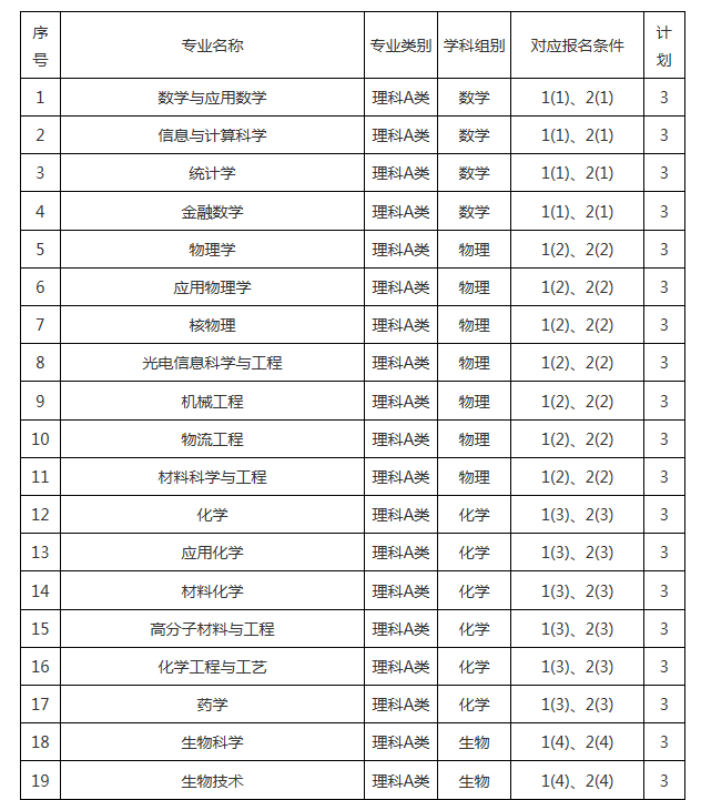 (1)對于符合“報名條件”中第1、2、3條的考生,可以同時選報附表中的A類和B類專業(yè);
