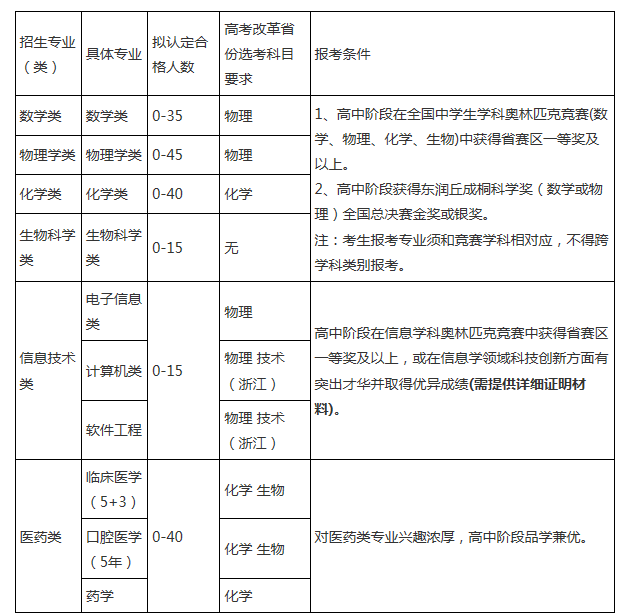 1、浙江省、上海市選考科目單科成績優(yōu)異且綜合素質(zhì)評價優(yōu)秀的考生可報考相關(guān)專業(yè)類。