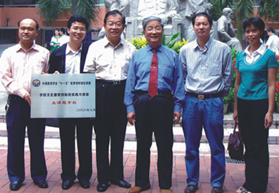 我校被省教育廳確定為“千校扶千校”的派出單位之一,與梅縣梅江區(qū)城北中學(xué)“結(jié)對子”,定期派出中層領(lǐng)導(dǎo)與骨干教師到結(jié)對單位授課、幫扶;與區(qū)內(nèi)梯面中學(xué)“結(jié)對子”,實行定點幫扶;派出教師到梅縣焦嶺中學(xué)支教;派出高級教師到區(qū)內(nèi)的長崗中學(xué)、花東中學(xué)支教。成功舉辦了“花都區(qū)德育研討會”。接待了來自香港的教育行政考察團,以及來自西寧、南昌、黃岡、梅州、羅定、番禺、增城等地的考察團數(shù)十個,促進了學(xué)校之間的交流與發(fā)展。