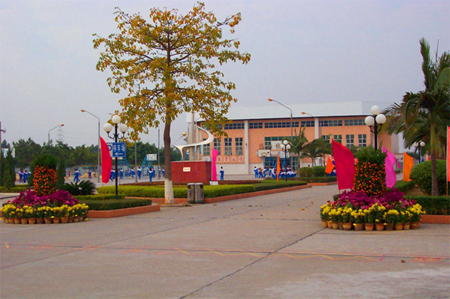 獨(dú)具一格的校門 學(xué)校簡(jiǎn)介 花山中學(xué)位于花山鎮(zhèn)育才路2號(hào),創(chuàng)辦于1958年,是廣東省一級(jí)學(xué)校、義務(wù)教育規(guī)范化學(xué)校、廣州市綠色學(xué)校和安全文明校園。1997年花山鎮(zhèn)政府投資2000多萬(wàn)元易地新建花山中學(xué),1998年旅美鄉(xiāng)賢劉國(guó)烈捐資200多萬(wàn)元建成花山體育館,2000年花山鎮(zhèn)少年業(yè)余體校在我校復(fù)辦。校園占地100畝,環(huán)境優(yōu)雅,設(shè)施齊全。目前全校教學(xué)班30個(gè),教職工110名,在校生1588名,生均占地面積36平方米,生均建筑面積8平方米。少年體校設(shè)有籃球、田徑、舉重、體操、女足五個(gè)項(xiàng)目,現(xiàn)有體校生100多人。
