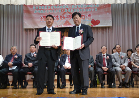 香港圓玄學(xué)院陳呂重德紀(jì)念學(xué)校、圓玄學(xué)院石圍角小學(xué)、廣州朝天小學(xué)締結(jié)姊妹學(xué)校簽約儀式