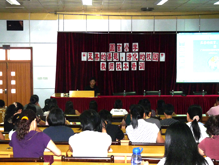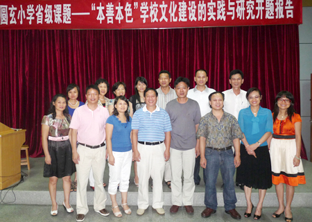 “至善課題,詩(shī)化校園”教師校本培訓(xùn) 今年,學(xué)校的《“本善本色”學(xué)校文化建設(shè)的實(shí)踐與研究》課題榮幸地成為省級(jí)立項(xiàng)課題。學(xué)校將以此為起點(diǎn),扎實(shí)開(kāi)展德育研究,逐步形成學(xué)校具有“至善”特色的校園文化。永不滿足,與時(shí)俱進(jìn)是圓玄小學(xué)的信念,我們將繼續(xù)努力,揚(yáng)帆遠(yuǎn)航,乘風(fēng)破浪,向新的目標(biāo)挺進(jìn)! 構(gòu)建“本善本色”文化,鑄造詩(shī)化教育品牌 廣州市花都區(qū)圓玄小學(xué)一直以人本發(fā)展為追求,秉承“全面發(fā)展,德育為首”的辦學(xué)理念,繼承和弘揚(yáng)圓玄學(xué)院的“正心修身,明道立德”的傳統(tǒng)美德,以“知止至善”為校訓(xùn),以培養(yǎng)求真向善,知錯(cuò)能改,誠(chéng)實(shí)高雅,博愛(ài)奉獻(xiàn)的接班人為目標(biāo)。學(xué)校緊緊圍繞這一目標(biāo),確立了《“本善本色”學(xué)校文化建設(shè)的實(shí)踐與研究》的實(shí)驗(yàn)課題,并扎實(shí)地開(kāi)展實(shí)驗(yàn)研究。我們把詩(shī)化教育作為“本善本色”學(xué)校文化建設(shè)的抓手,努力鑄造教育特色品牌。