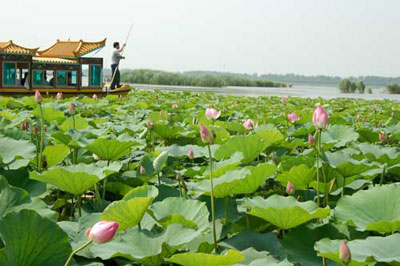 中廣網(wǎng)北京7月6日消息 東湖自然風(fēng)景區(qū),由于良好的生態(tài)保護(hù),至今仍保持著西周時(shí)期原始的自然風(fēng)貌,在這里可以領(lǐng)略到3000年前生態(tài)文化的絢麗多姿。景區(qū)水面7000余畝,碧波蕩漾,蒲葦婆娑,荷花飄香,鳥鳴魚躍,水草千姿百態(tài),水胡蘆隨風(fēng)飄浮。蕩舟湖中,你可看到“小荷才露尖尖角,早有蜻蜓立上頭”、“兩個(gè)黃鸝鳴翠柳,一行白鷺上青天”的動(dòng)人畫面。也可以看到“春水碧于天,畫船聽雨眠”,“秋風(fēng)吹拂龍湖面,化出白蓮千萬點(diǎn)”的美麗景觀。