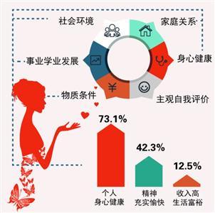 上海市婦兒工委、華東師大課題組昨天發(fā)布上海女性幸福指數(shù)調(diào)研報告。根據(jù)對徐匯、普陀、浦東新區(qū)等7個區(qū)縣千余名在滬女性的調(diào)查,上海女性幸福指數(shù)較高,85.7%的女性感到很幸;虮容^幸福;在影響幸福感的因素中,上海女性最看重自己和家人的身心健康。