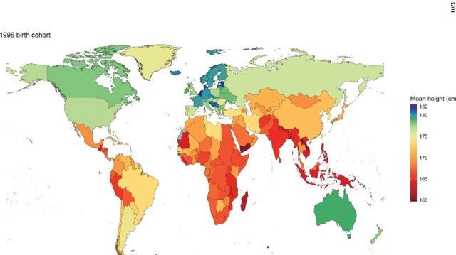 一些國家人口的身高近年出現(xiàn)停滯現(xiàn)象。比如,美國男女的平均身高在100年前分列三四名,2014年跌到37和42名。而撒哈拉以南的非洲地區(qū)還出現(xiàn)身高變矮的趨勢。專家認為,身高不僅取決于基因,還與營養(yǎng)和環(huán)境因素存在極大關(guān)系。
