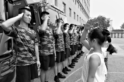 在左家莊消防中隊,6歲的默默有些不解地問消防員,“叔叔,我家在2樓,著火的時候,跳下來是不是可以呢?”
