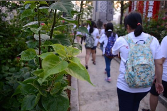 路兩邊的綠葉上綴滿了清晨的露珠,同學們快速“行軍”,無暇欣賞。