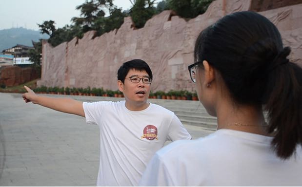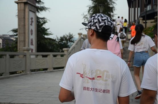 今日清晨,首都大學生記者團在赤水河畔的茅臺渡口進行徒步“行軍”體驗,此次“行軍”的線路為紅軍橋到長征路再到茅臺大橋,最后通過河濱路回到起點。今天茅臺鎮(zhèn)最高氣溫達到36℃,兩公里的“行軍”過后,同學們的衣服被汗水打濕,精神頭卻不減!俺运煌诰恕,踏著紅軍曾經(jīng)走過的道路,同學們深切地體會到革命勝利來之不易。