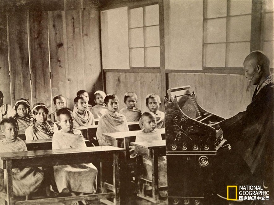 坐如鐘 | 在臺(tái)灣名為Kampanzan的山村里,孩子們沉浸在溫潤(rùn)的學(xué)海里。這張照片刊登在1920年的《國(guó)家地理》雜志上。