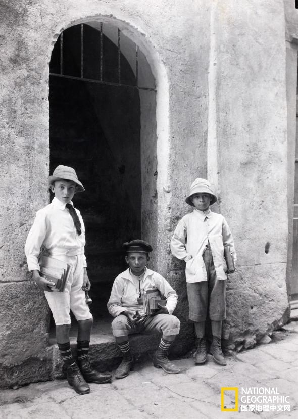 出來(lái)上學(xué)講究個(gè)“范” | 法國(guó)科西嘉島(Corsica)的幾個(gè)男孩帶著鋼筆、墨水、書等“裝備”前往他們所就讀的男子學(xué)校。該照片刊登在1923年的《國(guó)家地理》雜志上。