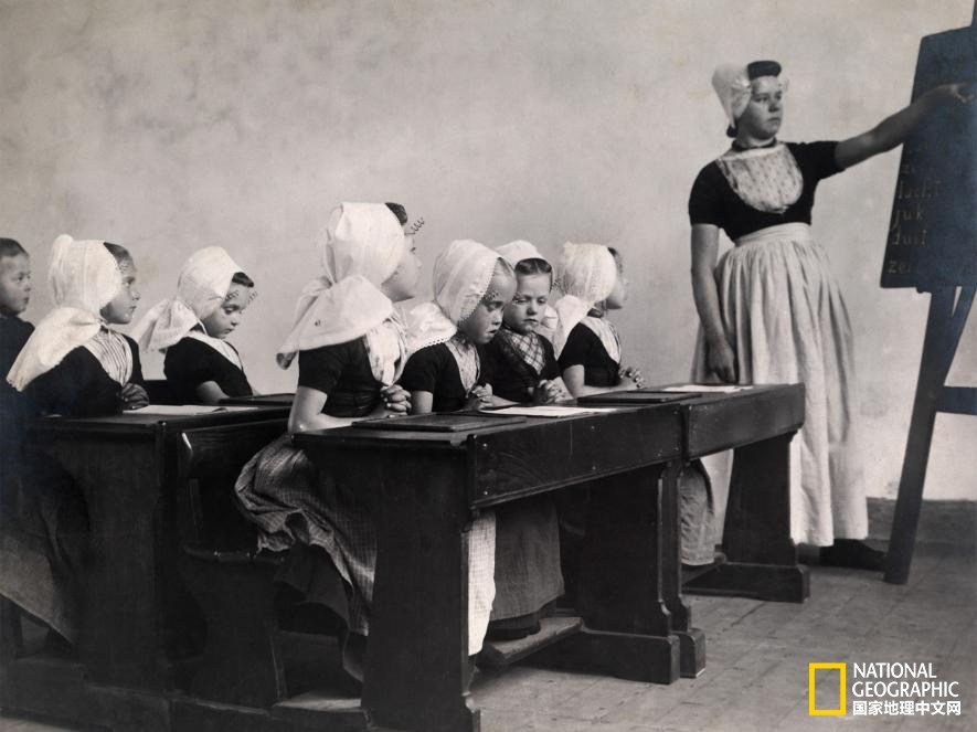 雙手合十 | 在1910年的《國(guó)家地理》雜志上,荷蘭瓦爾赫倫島(Walcheren Island)上的課堂場(chǎng)景展現(xiàn)了虔誠(chéng)的求學(xué)之路。