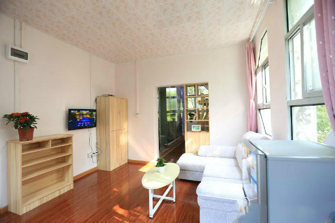 與舒適型宿舍相比,標(biāo)準(zhǔn)型宿舍沒有冰箱、液晶電視、衣柜和布藝沙發(fā),但增設(shè)有休閑二人位卡座。