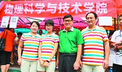 前天,在武漢大學新生報名點,一名與父母身著同款彩虹T恤的女生吸引了校長李曉紅的注意,“你們一家三口穿一樣的衣服啊!”“是啊,武漢太大了,武漢大學也太大了,我們穿一樣的,不怕走丟!币蒙磉呉蝗喝艘魂嚉g笑。“咱們武漢大學不光大,也有很深厚的文化底蘊啊!”李曉紅笑著說。