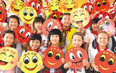 9月9日,山東省沂源縣荊山路小學(xué)學(xué)生將“我的笑臉”送給老師。趙東山攝(人民視覺(jué))