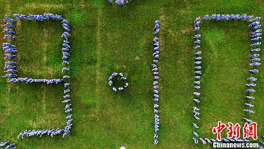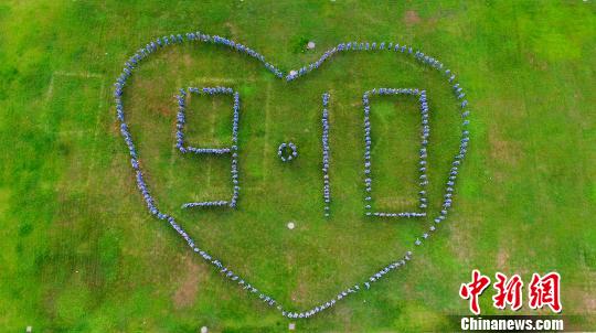 300名大一新生拼出“9·10”圖案以慶祝教師節(jié)的到來。孟德龍 攝