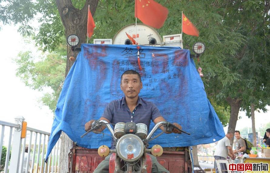 山東濟南市,一輛經過改裝的摩托三輪車停在街頭,車頂上安裝了太陽能,既能看電視又能做飯。經過了解,小伙名叫金東賀,今年36歲,2016年5月18日從吉林延邊出發(fā),途徑遼寧、天津、北京、河北,來到山東,行程近3400公里,計劃用三年半的時間走遍全中國。金東賀出發(fā)的時候就帶了幾十元錢,一路靠撿廢舊飲料瓶換取旅途費用。改裝這輛車的費用不到2000元,安了太陽能,配了電視和音響,還養(yǎng)了兩只狗和自己做伴。