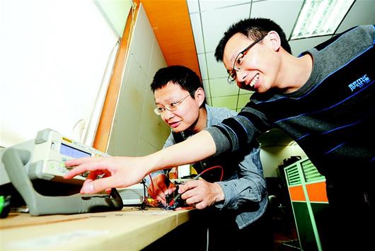 國(guó)家創(chuàng)新創(chuàng)業(yè)新政激發(fā)了大學(xué)生們創(chuàng)業(yè)熱情。圖為華工科技企業(yè)孵化器內(nèi)大學(xué)生創(chuàng)業(yè)者在做產(chǎn)品試驗(yàn)。(記者 張朋 視界網(wǎng) 楊爍 攝)