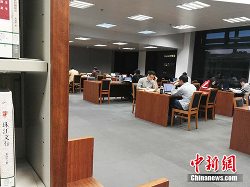 王贊向記者證實了這樣的說法,“前幾個月放暑假的時候,來看書的人就很多。那時候甚至有不少人坐在(閱覽室的)地上看書,靠著墻,一排一排的”!斑@幾天大家都放假,人會多些。暑假時看書的人更多,如果晚到一點可能就占不到好座位了!