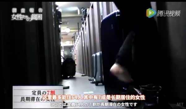 日本有一家網(wǎng)吧,近兩年有越來越多的女性長期居住,最多能住下64人,其中有7成是長期居住的女性。其中有一名19歲的女孩,已經(jīng)在這里居住了2年半,與她同居的還有14歲的妹妹和41歲的母親。從視頻來看,大約一個榻榻米大小的房間里,堆滿了她和家人的各種生活用品。