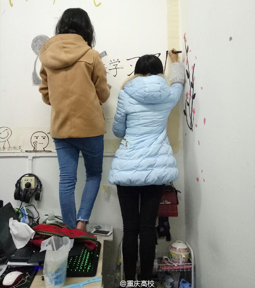 見過在寢室貼滿壁紙來裝飾的,那你見過在寢室貼滿表情包的嗎?據(jù)網(wǎng)友爆料,重慶一所高校的幾位女生就采用了這種簡潔又高校的裝扮方式,在寢室的墻上、門上貼上表情包,不僅有賣萌和魔性的表情,還有不少“催學(xué)習(xí)”的表情包。