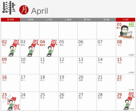4月2日-4日為清明節(jié)假期,共3天,4月1日(星期六)上班;