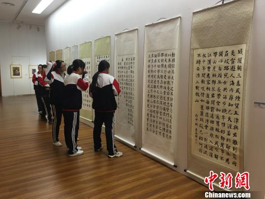 “我畫家鄉(xiāng)美,實現(xiàn)中國夢”京津冀中小學(xué)師生美術(shù)作品展4日在京開幕。圖為學(xué)生參觀展覽!≡尽z