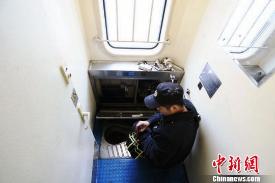 “陳兵、龍景遠(yuǎn),你們從Z150次列車的南頭上車,插好防護(hù)信號(hào),我從北頭的硬座車開(kāi)始檢查,注意檢查每一輛車集便器的運(yùn)行狀態(tài),我們?cè)诓蛙噮R合”,黃海軍在對(duì)講機(jī)里發(fā)出檢修指令。