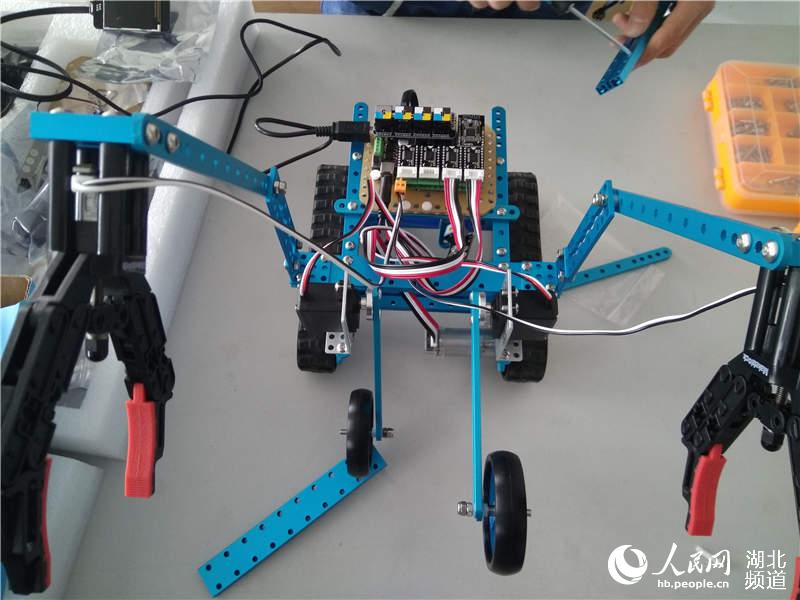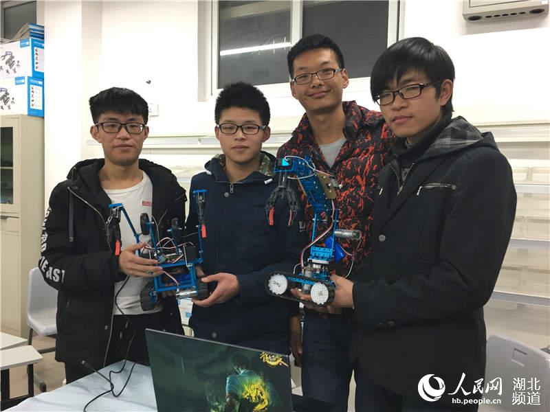 人民網(wǎng)武漢3月28日電 通過手機(jī)或者電腦操控,機(jī)器人可以捶背、捏肩。3月28日,武昌理工學(xué)院信息工程學(xué)院4名大學(xué)生在該校創(chuàng)客機(jī)器人展示活動中,展出了這臺原創(chuàng)“按摩機(jī)器人”,吸引了眾多師生的駐足觀看。