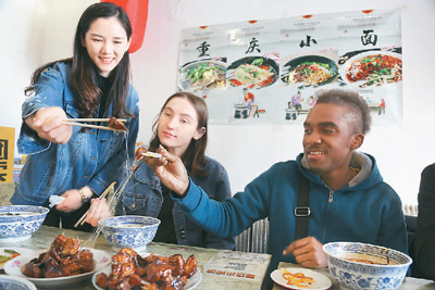 “重慶小面”曾在央視“舌尖上的中國(guó)”欄目播出,讓留學(xué)生們更加感受到中國(guó)烹飪文化的神奇魅力,體驗(yàn)到地地道道的中國(guó)美食。