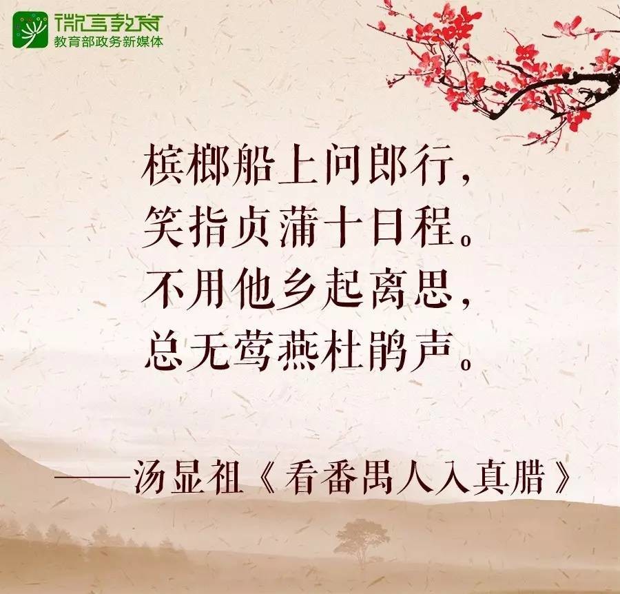 詩(shī)詞里,有對(duì)勇敢者的贊頌。 明代湯顯祖在《看番禺人入真臘》里寫道:“檳榔船上問(wèn)郎行,笑指貞蒲十日程。不用他鄉(xiāng)起離思,總無(wú)鶯燕杜鵑聲。”從廣東往真臘(今柬埔寨境內(nèi))定是一路艱險(xiǎn),樂(lè)天派的番禺人卻樂(lè)觀“笑指”。 -