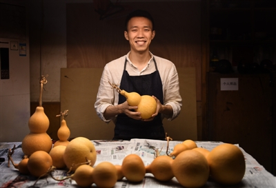 吳勁松給葫蘆上色后晾干