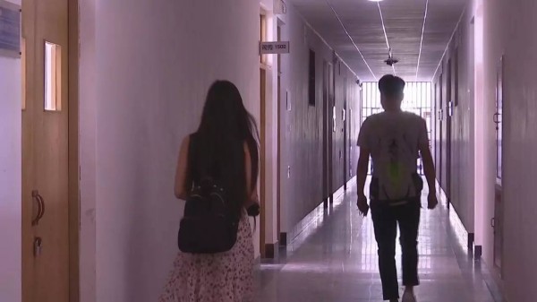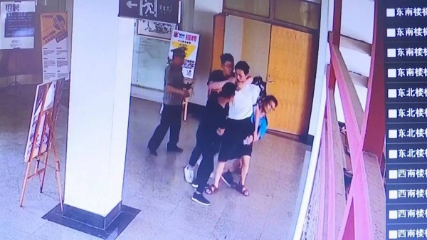 發(fā)現(xiàn)白衣男形跡可疑,高老師迅速組織幾個(gè)學(xué)生上樓追,這也展開了一場(chǎng)貓捉老鼠的游戲,從一樓直到四樓,幾人不露聲色,悄悄跟隨,最終在白衣男回到一樓大廳門口的時(shí)候,高老師第一個(gè)沖了上去。