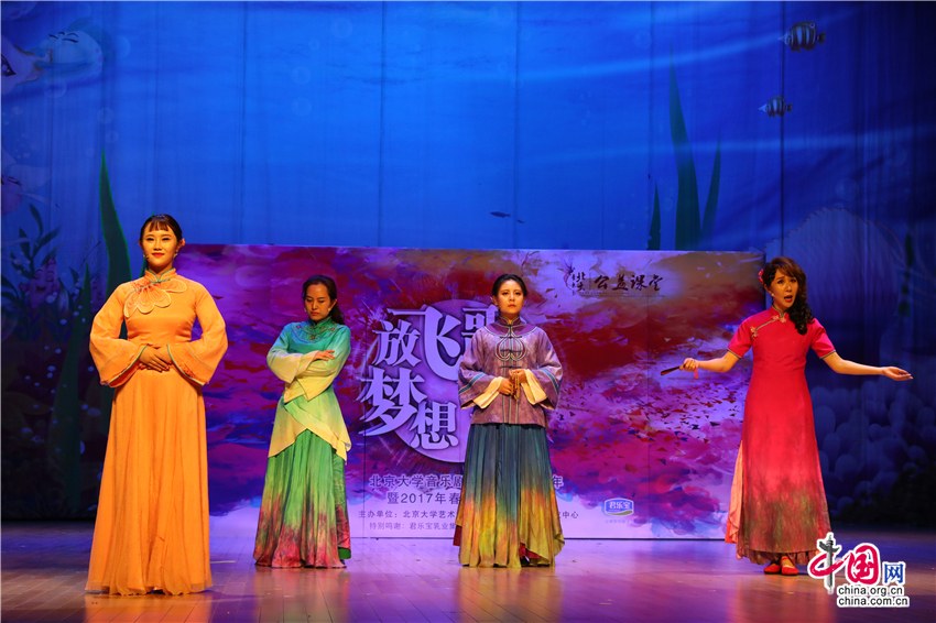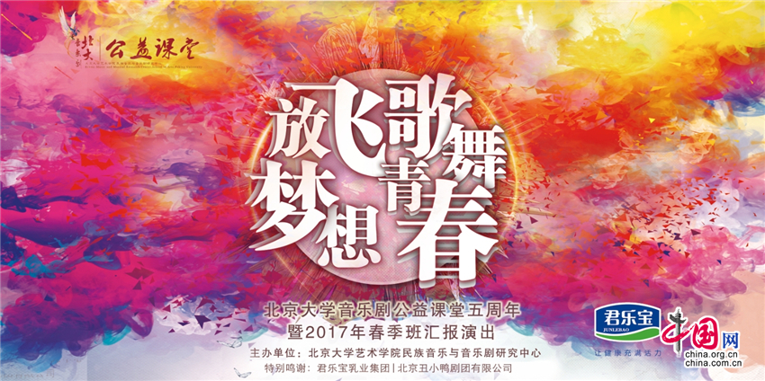 中國網(wǎng)6月5日訊(記者 曾鑫)2017年6月3日,2017北京大學(xué)音樂劇公益課堂春季班匯報演出暨北京大學(xué)音樂劇公益課堂五周年紀(jì)念活動在海淀工人文化宮隆重舉行。在六十多分鐘的精彩演出中,學(xué)員們將自身特長與課程所學(xué)相結(jié)合,把中西方音樂劇片段演繹得有聲有色,顯示出良好的專業(yè)能力,為大家呈現(xiàn)了一場完美的匯報演出。此次匯報演出得到了君樂寶乳業(yè)集團和北京丑小鴨劇團有限公司的大力支持。