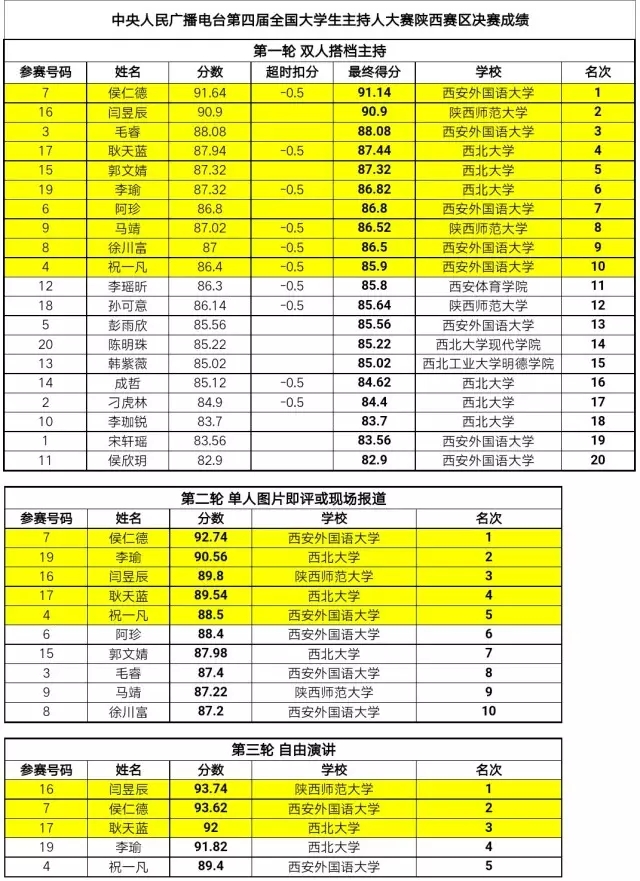 網(wǎng)羅青春好聲音,開啟人生新頻率。2017年6月15日晚,中央人民廣播電臺第四屆全國大學(xué)生主持人大賽陜西賽區(qū)決賽在西安外國語大學(xué)落下帷幕,陜西賽區(qū)十強(qiáng)選手出爐,前五名選手成功晉級全國復(fù)賽。