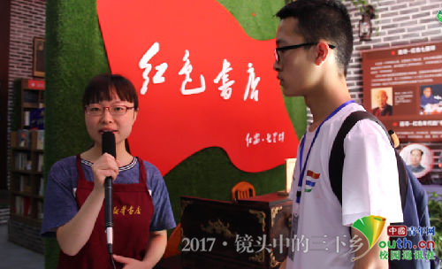 采訪長勝街紅色書店店主。中國青年網(wǎng)通訊員 王建林 攝