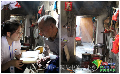 左:老人講著先烈的故事 右:老人生活的家 中國青年網(wǎng)通訊員 王建林 攝