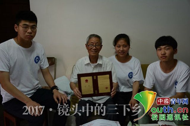 高如豐老先生向隊員們展示證書。中國青年網通訊員 吳義斌提供