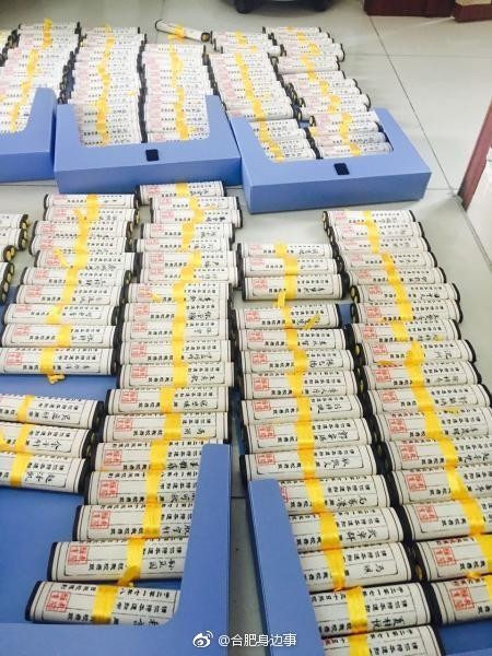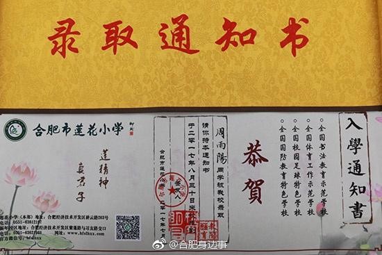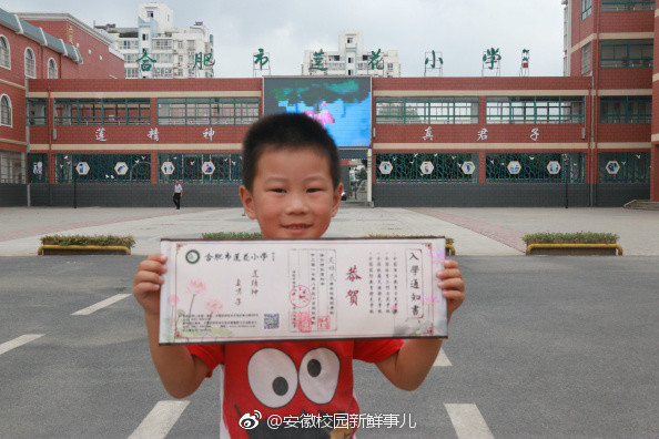 據(jù)了解,近日,合肥市蓮花小學(xué)及該校新年校區(qū)近800名2017級(jí)新生領(lǐng)到入學(xué)通知書。令人感到驚喜的是,今年該校新生錄取通知書上的所有新生姓名都由該校書法老師用毛筆書寫,錄取通知書以蓮花形象為底色,透出書香氣息。