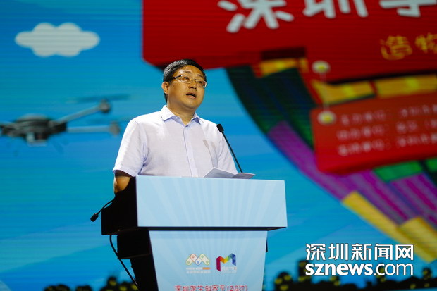 深圳市人民政府副秘書長劉佳晨宣布2017年深圳學(xué)生創(chuàng)客節(jié)開幕。