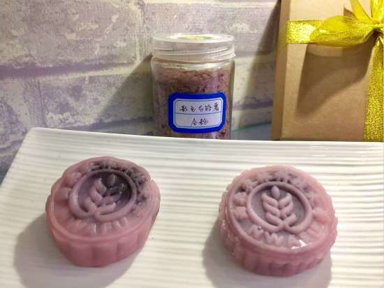 得知農(nóng)學(xué)院陳勤教授最新研究成果彩色馬鈴薯營(yíng)養(yǎng)成分豐富,富含天然色素,岳慧芬萌發(fā)了用此制作月餅的想法!皞鹘y(tǒng)月餅很多都是高油、高糖的,并不是十分健康,而彩色馬鈴薯不僅滿足視覺需求,而且兼具營(yíng)養(yǎng)價(jià)值!痹阑鄯医榻B,在制作月餅的過程中,為了避免馬鈴薯營(yíng)養(yǎng)成分丟失,采取加工彩色馬鈴薯全粉。同時(shí)為了不破壞花青素,采用了蒸制法。