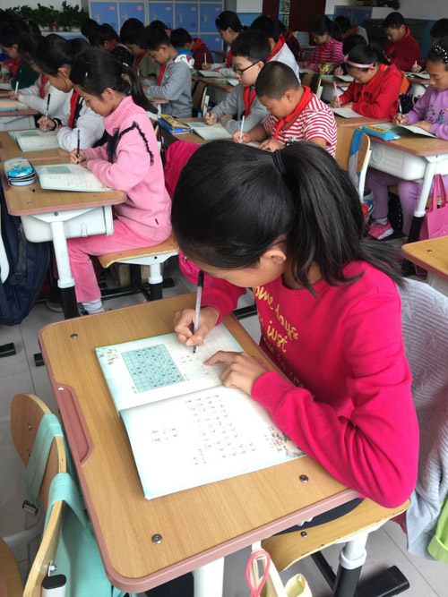 學(xué)生用讀本進(jìn)行書寫練習(xí)