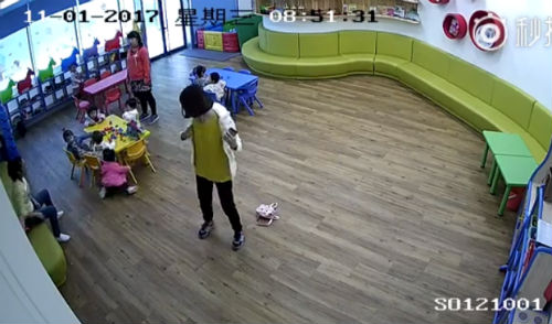 上海攜程托管所老師虐童,推搡幼兒致其摔倒頭部撞擊在桌角。