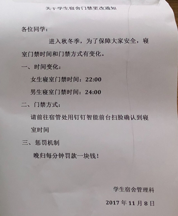 。 原題為《高校宿管阿姨引入人臉識別查寢,奇葩條款要求女生必須比男生早到兩小時,違者罰款》)
