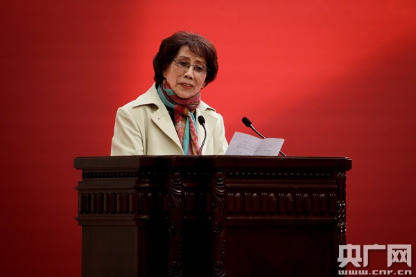 圖為葛蘭老師為語藝節(jié)致賀詞 央廣網(wǎng)記者石昊鑫攝