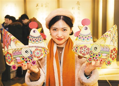 港澳大學(xué)生樂學(xué)“非遺”,來自香港大學(xué)、澳門大學(xué)和南京大學(xué)等多家大學(xué)的大學(xué)生們,近日在江蘇南通歷史文化展示中心、南通藍(lán)印花布博物館和陸洪小鎮(zhèn)開心體驗(yàn)“花露燒”酒釀制技藝、棕編、燈彩和列入“國家非遺名錄”的藍(lán)印花布等多個非物質(zhì)文化遺產(chǎn)項(xiàng)目,感受中國傳統(tǒng)文化的魅力。圖為香港學(xué)生在南通歷史文化展示中心展示南通燈彩生肖雞作品。