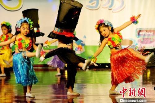 資料圖:孩子們在進行兒童節(jié)表演。卓忠偉 攝
